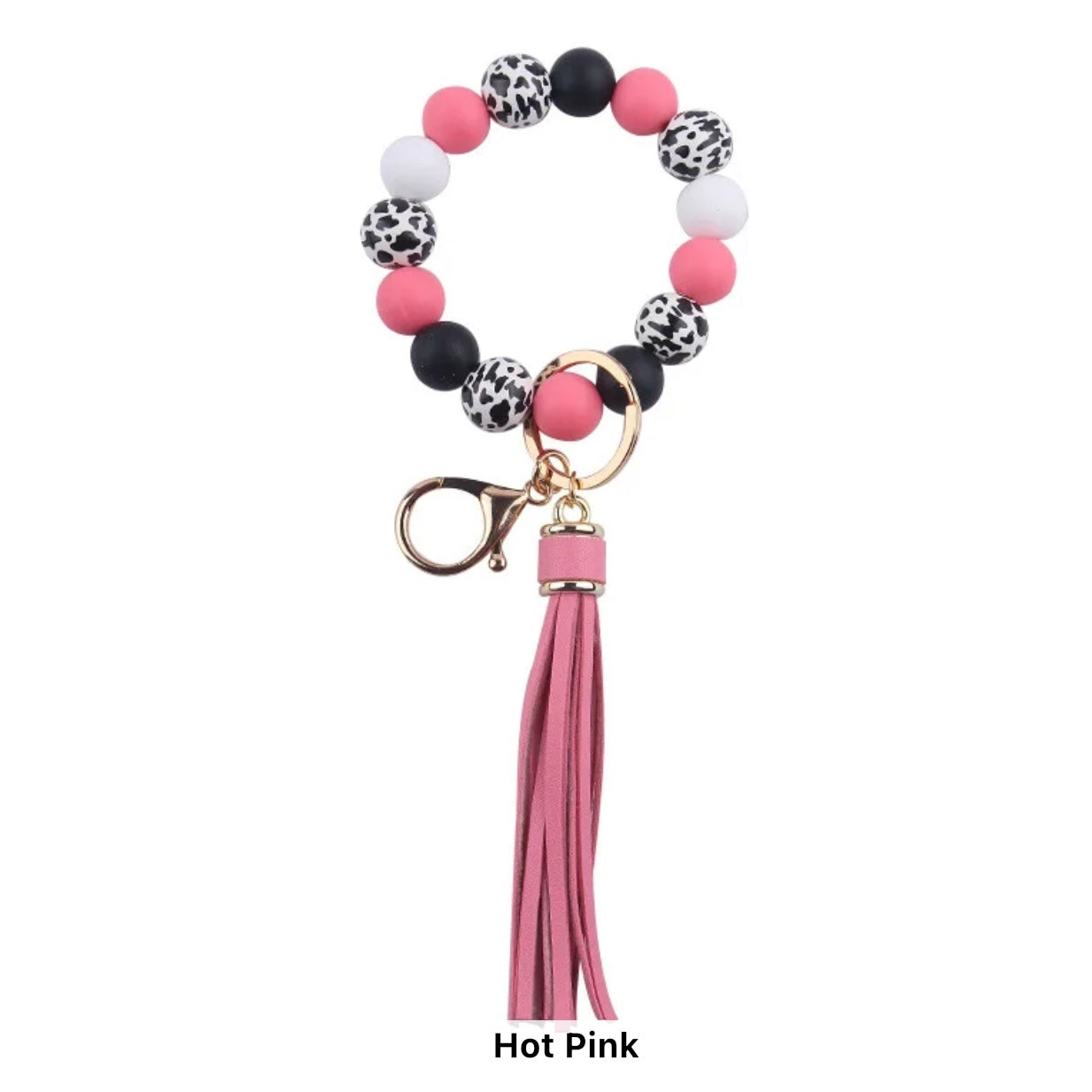 Beaded stretchy wristlet with tassel keychain clip